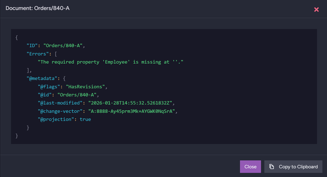 Schema validation ensures your documents conform to the defined data model. Whether you need a single check after a model change or migration, or to run it continuously, RavenDB’s JSON schema validation keeps your data model predictable and consistent, even in the era of rapid development, increasing trust in your data across multiple teams.