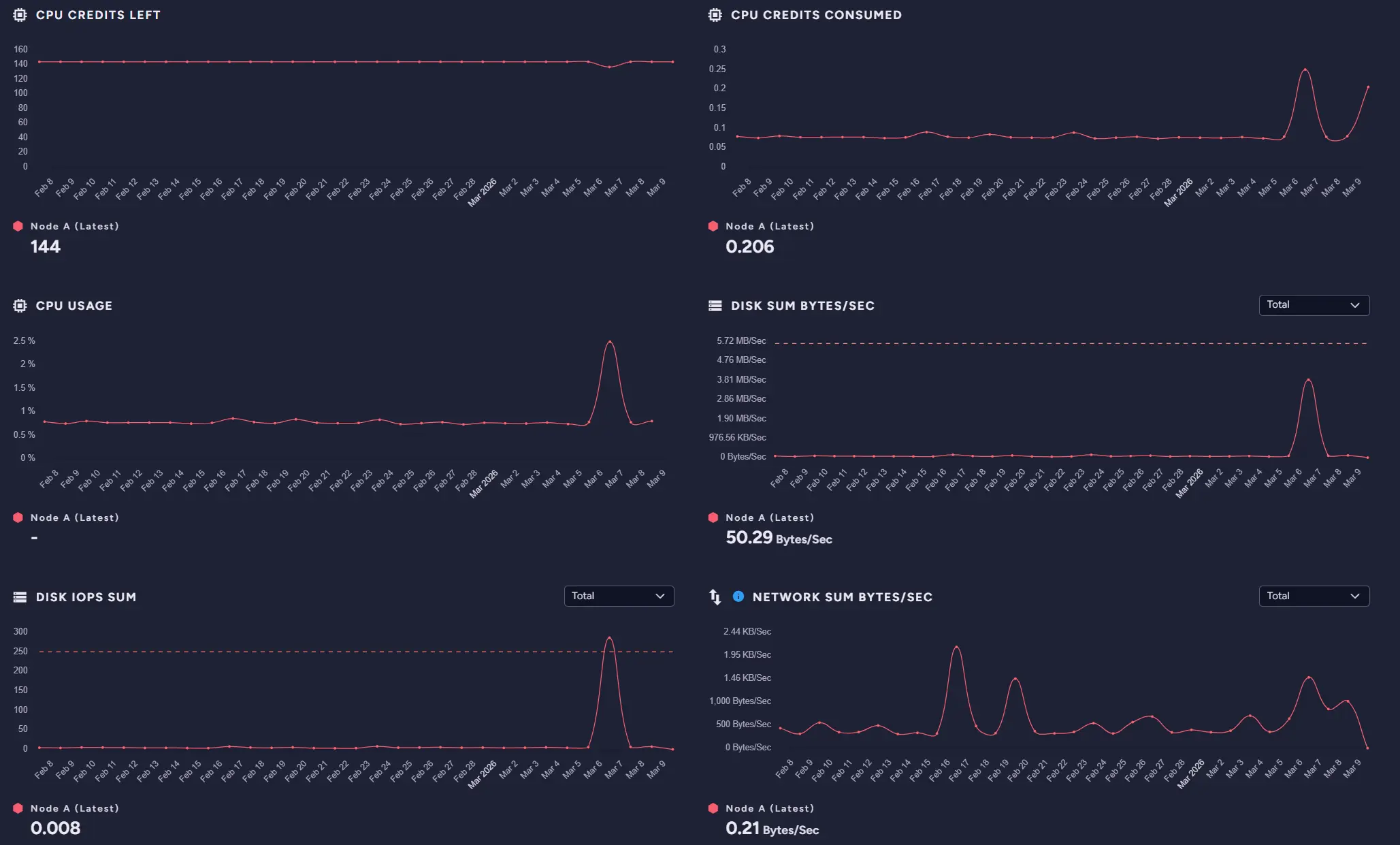 Knowing that this machine can handle only about 500 IOPS outside burst capacity, we can expect performance to drop significantly once the burst credits are exhausted. Being aware of your machine’s limits and “normal numbers” within those widgets can give you much information about the state of your instance.