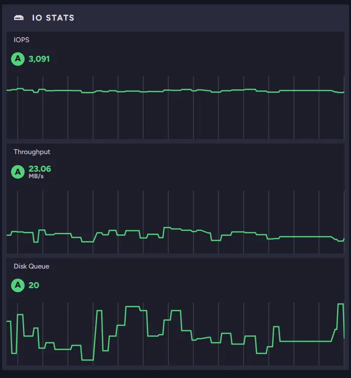 We can also look at other metrics to see if the rest of our systems are fine. For example, we can look at the IO Stats widget.
