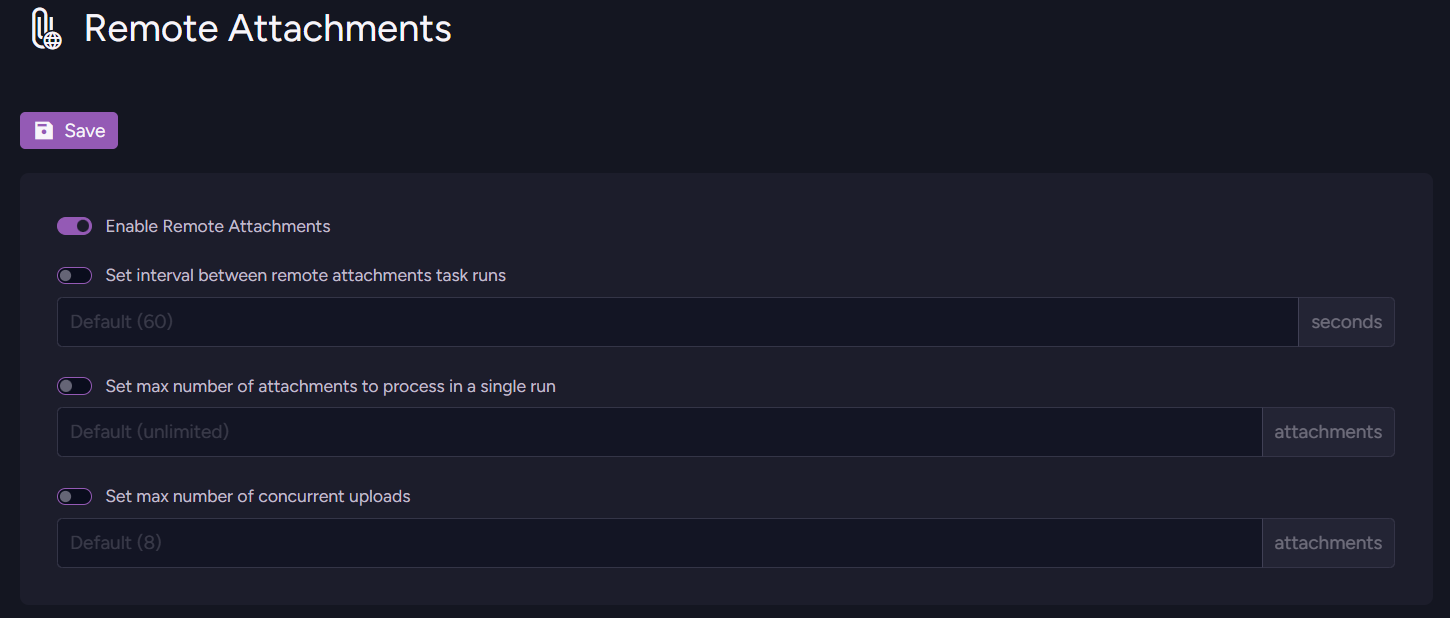 Remote attachments let you store large attachment data in external cloud storage instead of inside the database. This keeps your database small and fast, even when working with heavy files. Attachments are stored in your own cloud account (Azure Blob Storage, Amazon S3, or S3-compatible storage).