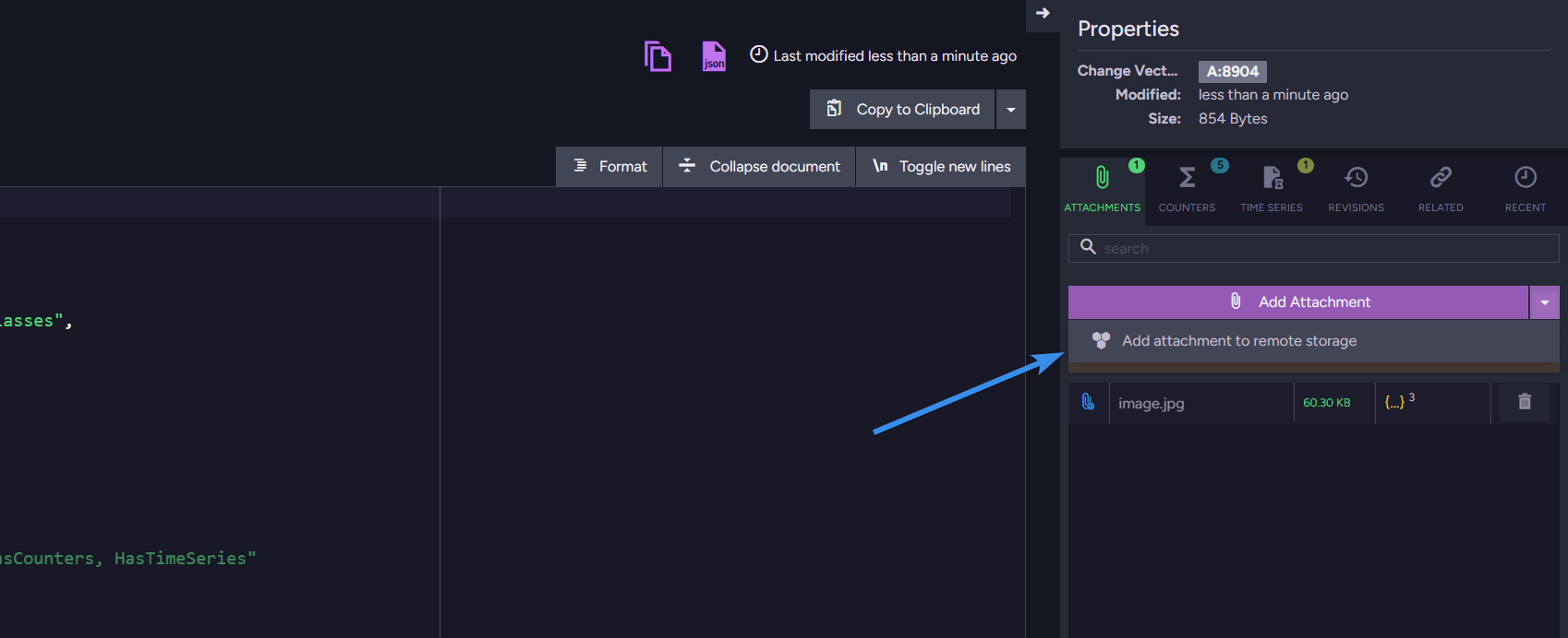 Once we are configured up let’s add a new remote attachment to a document. Enter your document you want to add attachment to and then select the attachments tab under the properties window. There, you want to click the arrow on the right to reveal ‘Add attachment to remote storage’
